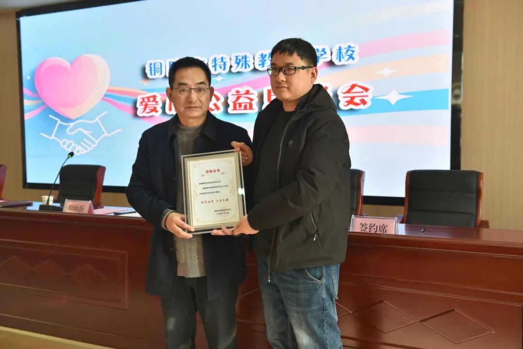 冬日暖阳映初心,爱心善举暖人心。1月16日下午,铜陵市特殊教育学校内暖意融融,一场温情满满的捐赠活动在此举行。铜陵市光彩事业促进会受合肥市铜陵商会会长、安徽耀明机电设备有限公司董事长吴翔虎委托,为该校5名特殊困难家庭学生送上1万元善款,用爱心为孩子们的成长之路添温助力。